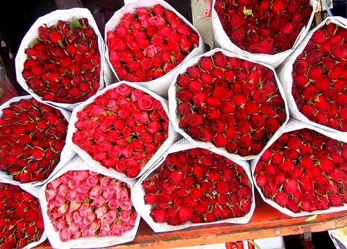 真上からみたバラの花束がいっぱい