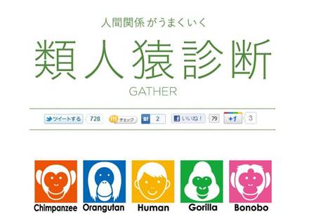 類人猿診断 人間にはなれなかった(^_^;) 平和主義者ではなかったみたい 以下内容もっとも私たち人間に近いとされる大型類人猿。チンパンジー、ゴリラ、オランウータン、ボノボ。その性格は、それぞれまったく違います。単独行動で職人肌のオランウータン、ムラっ気が強いけどリーダーシップのあるチンパンジー、秩序を守る物静かなゴリラ、愛嬌があって互いの気持ちを大切にするボノボ。あなたはどのタイプ? さっそく診断してみましょう!類人猿診断 [12回]PR